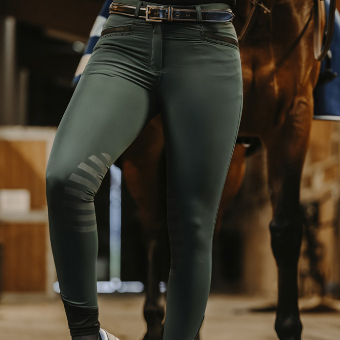 Ce que j’apprécie particulièrement en tant que cavalière sont les pantalons dotés d’un fond en silicone qui assurent un bon maintien sur la selle. Si votre cavalier préfère quelque chose de plus léger, vous pouvez opter pour un pantalon doté simplement de basanes (renforts au niveau des genoux uniquement). Pour un super rapport qualité prix : la version chaude et full grip de la marque Fouganza.