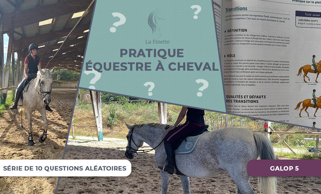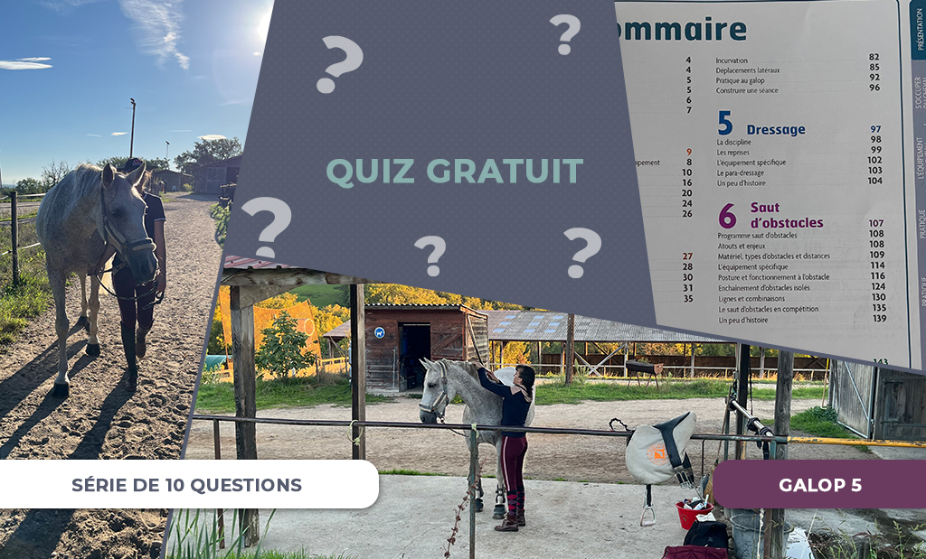 Préparez votre Galop 5 sans stress grâce à mes quiz de révision conçus pour rendre l’apprentissage simple et agréable. Ces exercices interactifs vous aideront à assimiler les bases indispensables et à vérifier vos connaissances avant l’examen.